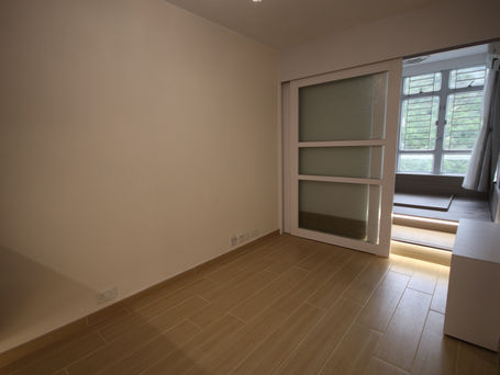 因為屋主是一個人住的原由,我們將客廳近窗的位置改設成睡房,並且以藝術玻璃趟門來劃分睡房與客廳的空間,形成半開放式的間隔,讓自然光可以從睡房的窗戶進入到客廳,增強了睡房與客飯廳的通透感。藝術玻璃同時為睡房帶來一定的私隱度。